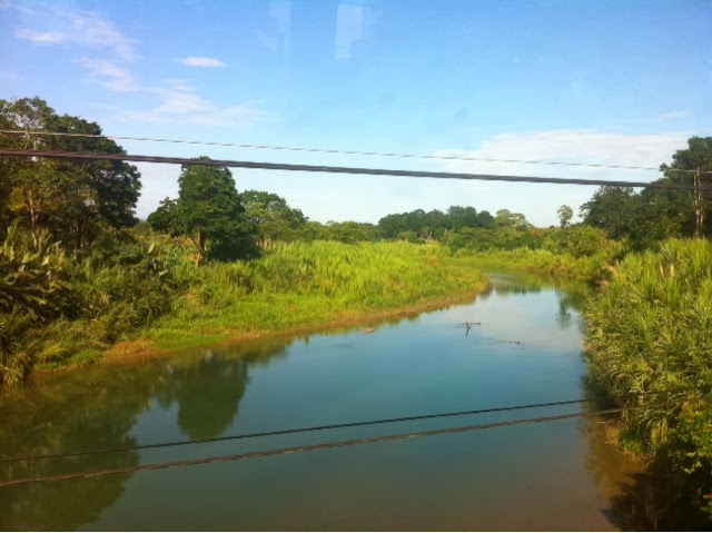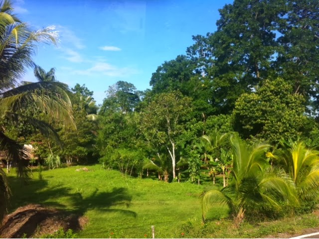 Avui matinem menys, el bus que ens portara a Limon surt a les 7.30h. Desfem part del cami d’ahir per anar cap a Tortuguero, famos per les tortugues que hi van a desovar, tot i que en la epoca que hi anem, no n’hi haura. Es un parc natural de canals on nomes s’hi pot arribar amb vaixell aixi que per aixo anem cap a Moin, per agafar un taxi aquatic que ens hi porti. De moment, escrivint aquestes notes enmig del traqueteig del bus (que no es poc) i mentre disfruto de paisatges verds com els que es veuen a les imatges. Realment Costa Rica es precios!