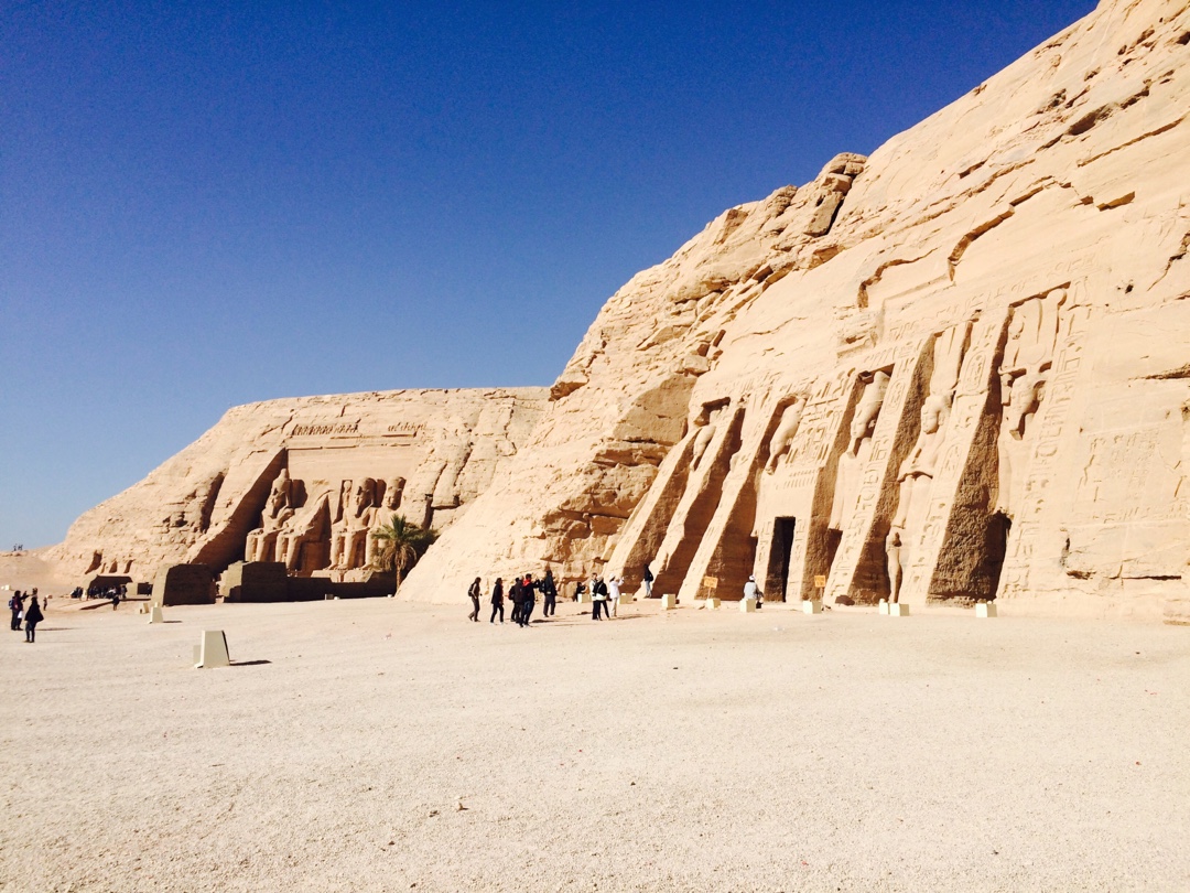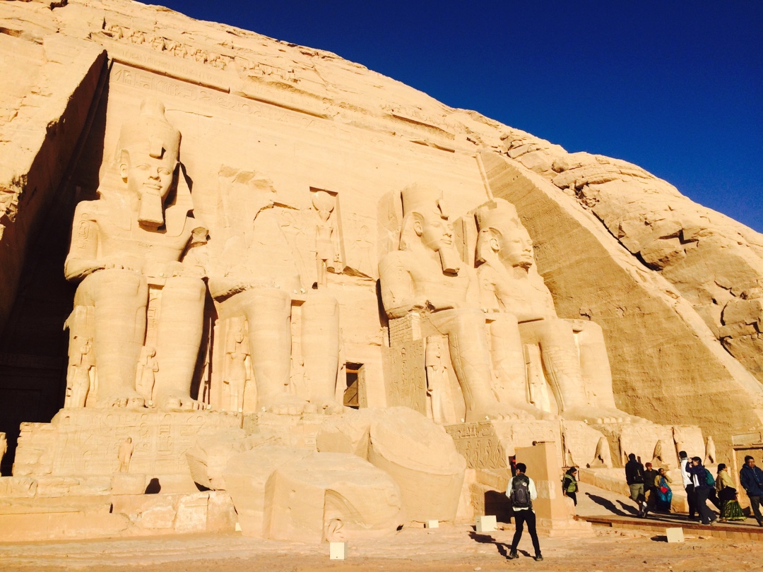 Toca matinar de valent. A les 3 de la matinada agafarem l’autobús que ens portarà en convoi fins a Abu Simbel, a 280 km d’Aswan i a només 40 km de la frontera amb el Sudan. Fins abans de la revolució es podia anar en avió a Abu Simbel ja que hi ha un petit aeroport militar però actualment està la zona semi-militaritzada perquè Egipte té por que un atemptat destrueixi la Presa Alta que reté l’aigua al Llac Nasser. Si això arribés a passar, la onada arrassaria Egipte, no en quedaria res.Després de més de 3 hores en autobús atravessant el desert, arribem a Abu Simbel. Iniciem el camí que voreja el turonet seguint les indicacions mentre veiem la immensa extensió del Llac Nasser. Hi ha una zona en la que no es veu l’altra banda, el que es veu es l’horitzo! Seguim avançant i ens trobem els magnífics colossos del temple de Ramses II, que el representen a ell mateix en diferents etapes de la vida. El temple està dedicat al mateix Ramsès II i també a Ra-Horajty, Amon i Ptah.