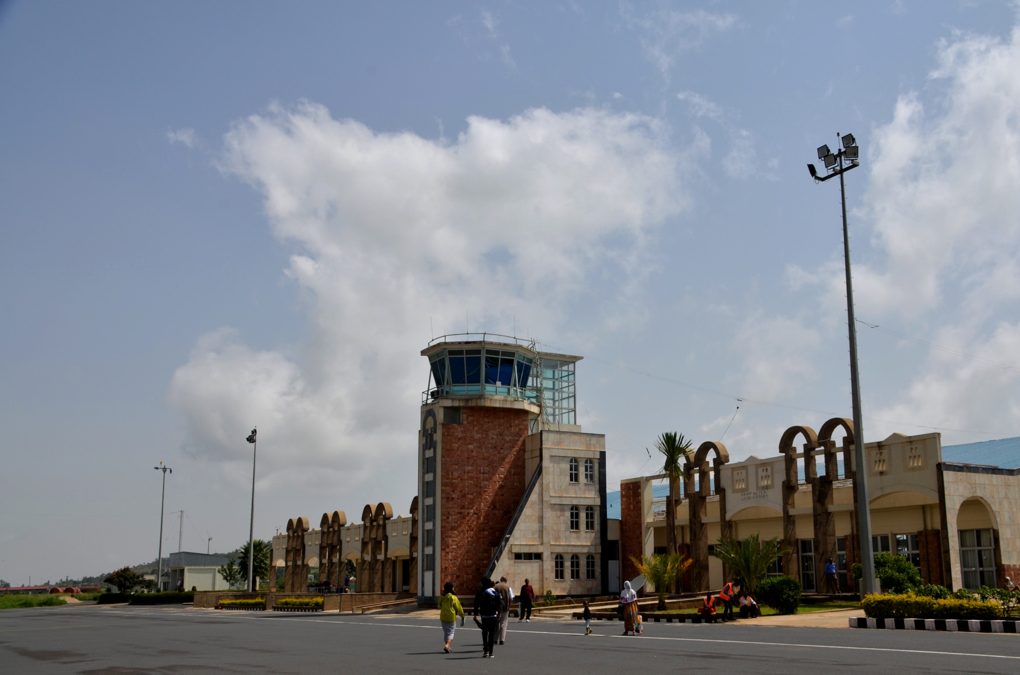 L’aeroport d’Axum és petit i només hi ha el nostre avió a la pista. Un avió que surt d’Addis Abeba i va fent parades fins arribar a Axum. Convé mirar el vol que s’agafa perquè en el nostre cas vam parar a Gondar i Lalibela abans d’arribar a Axum i, en canvi, un vol més tard va directe i al final estalvies temps.