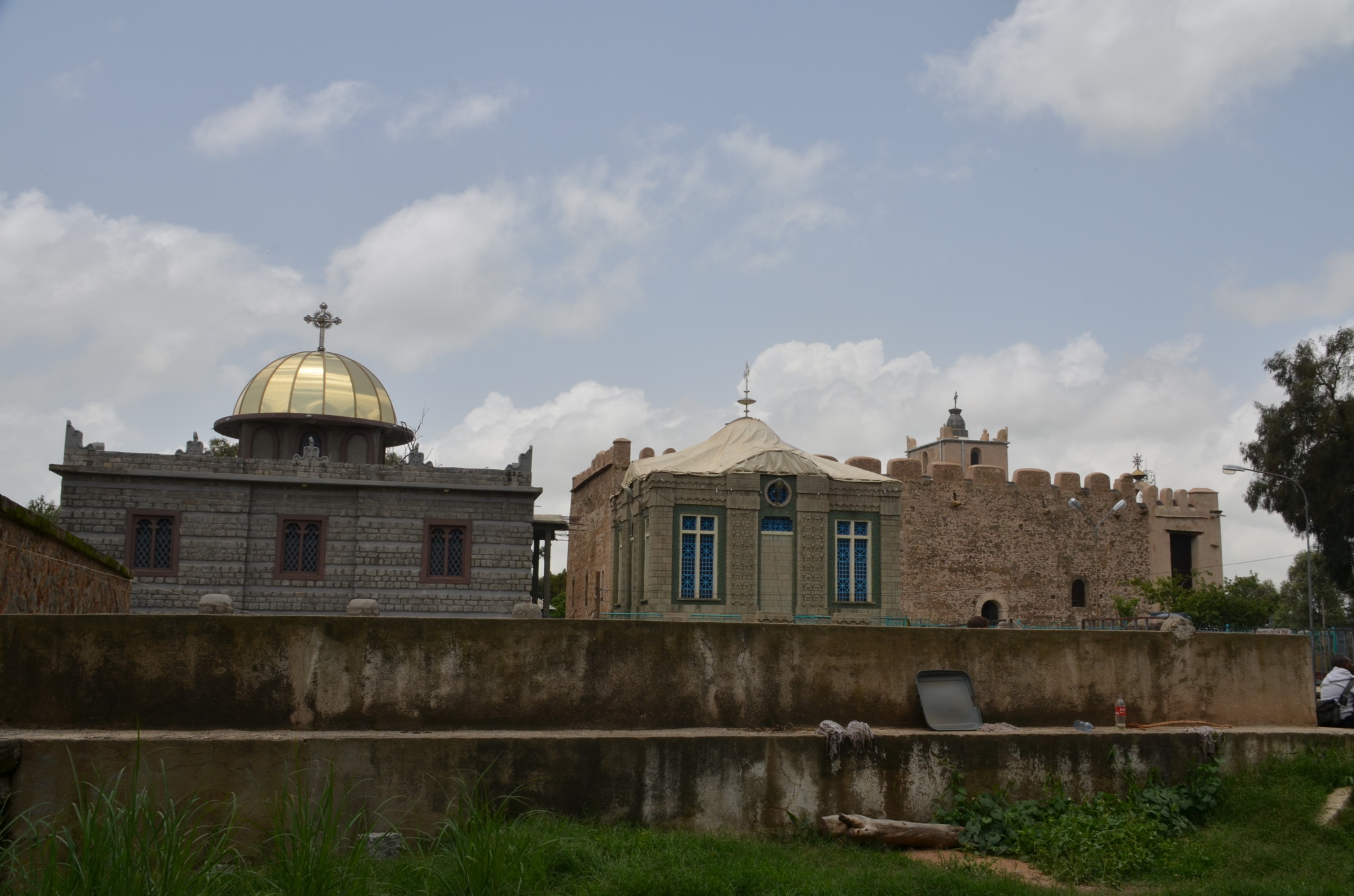 Darrera l’edifici construit per Haile Selassie hi ha els edificis històrics, dels quals el de pedra és el més antic que es conserva, construit pel rei Fasiledes (el que va fer els castells de Gondar) i el de l’esquerra és on suposadament s’allotja l’Arca de l’Aliança. Les dones no podem acostar-nos més enllà del petit mur