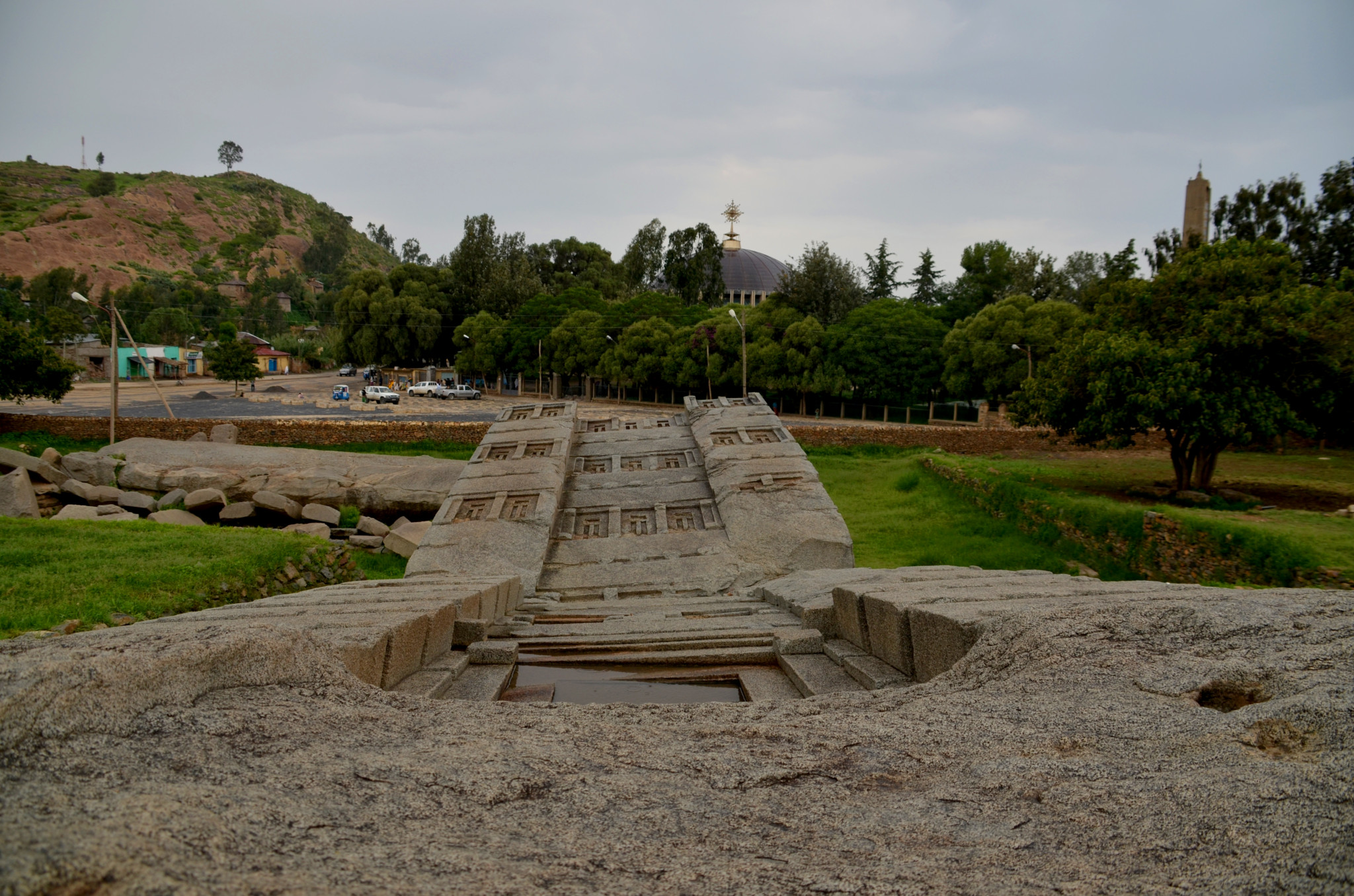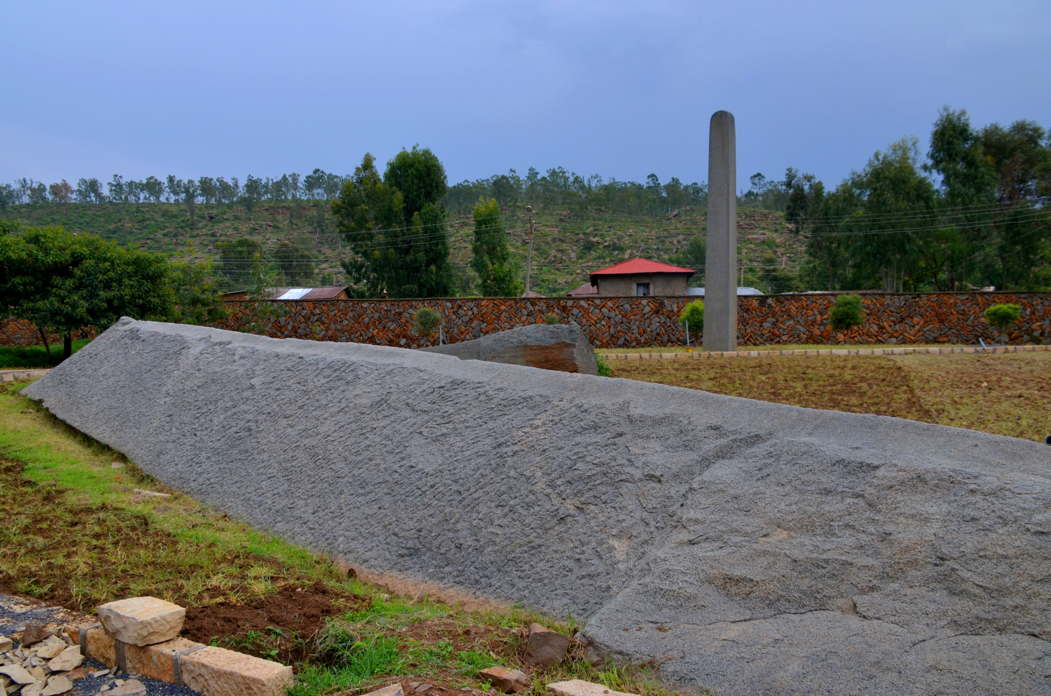 L’estela més gran que hi ha al camp d’Axum avui està a terra. La tradició diu que és del rein Remhai (s. III) però va caure per raons que no estan clares. Alguns diuen que va ser la reina Yodit qui la va fer tombar, però sembla que el més probable és que caigués quan l’estaven posant dreta o poc després perquè la base era massa petita per sostenir-la. En qualsevol cas, veure-la a terra permet que agafem encara més consciència de com en son de grans.