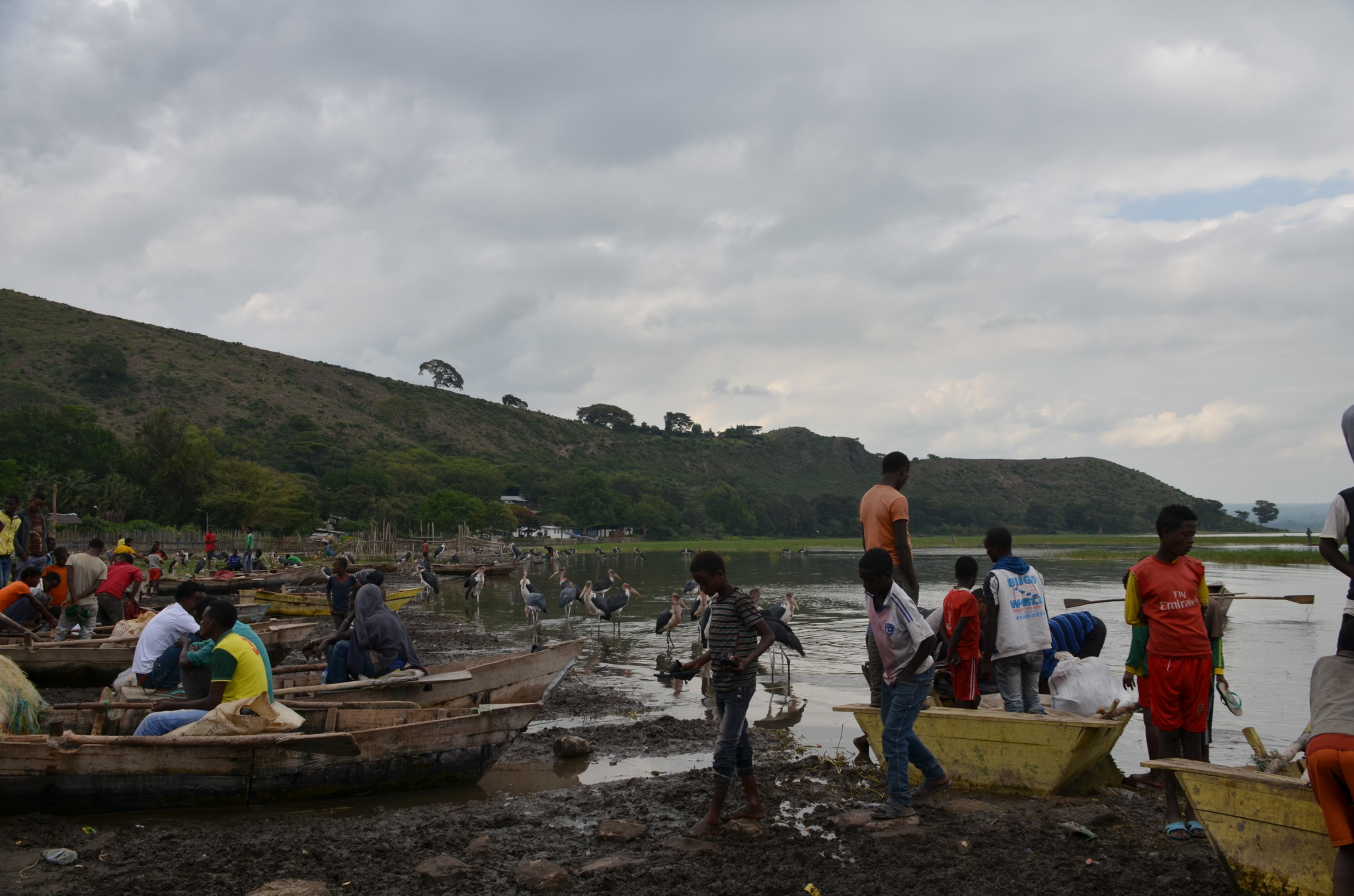 La primera visita del dia és al llac Awassa, concretament en el lloc on hi ha el mercat del peix de la ciutat d’Awassa. És un constant anar i venir de gent i barquetes amb les captures del matí. Petites barquetes destartalades arriben a la platja enmig del bullici que genera la gent que s’apilotona al voltant ràpidament. El llac Awassa és el més petit de la cadena de llacs de la Vall del Rift etíop i està en el que era el cràter d’un volcà avui mort.
