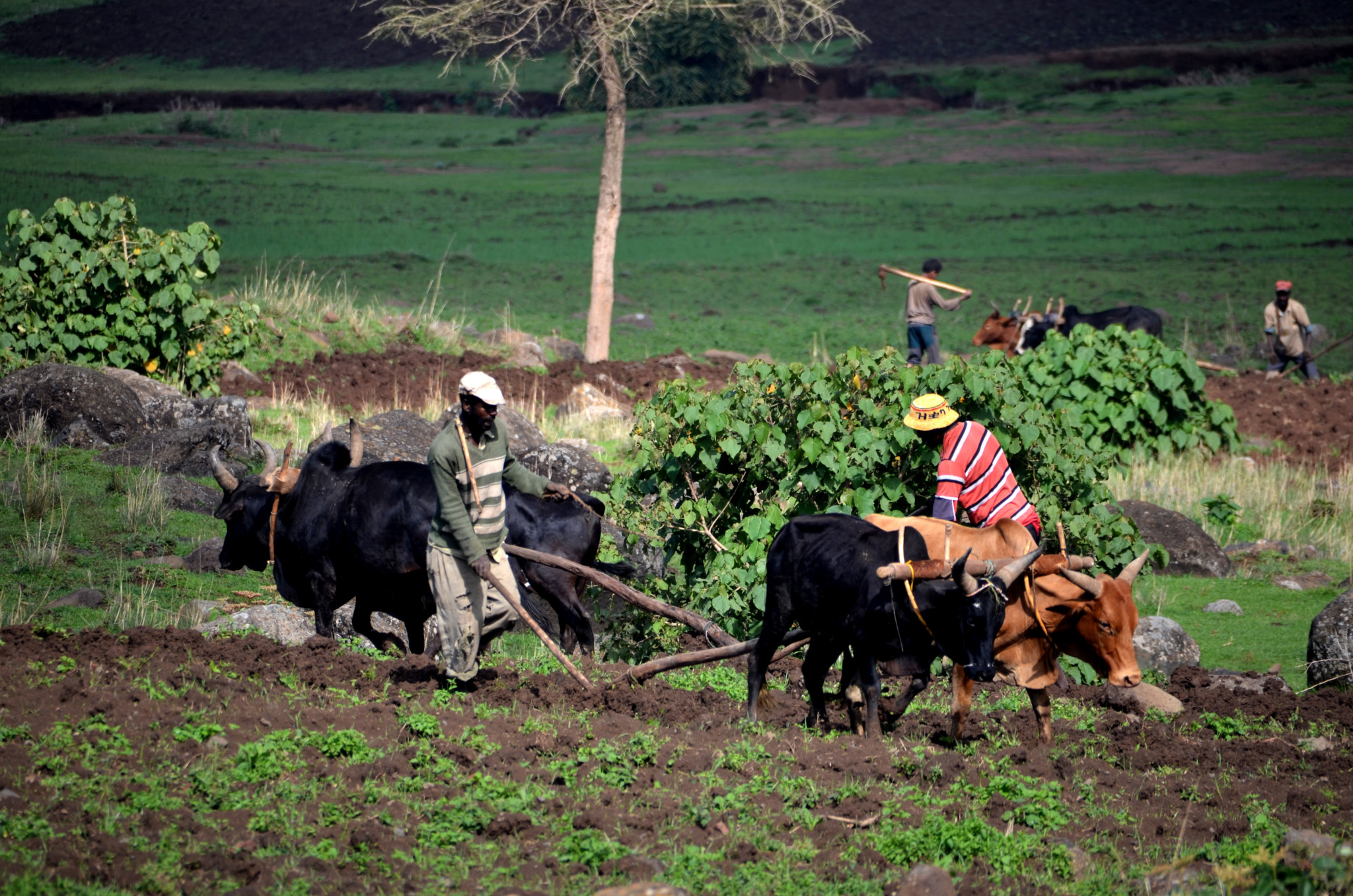 De seguida que sortim d’Addis Abeba ens endisem en la realitat etíop, la economia agrària és el que predominarà a tot el país. Sorprèn que aquí els camps es treballen amb bous, son bous amb gepa i grans cornamentes que arrosseguen arades fetes possiblement pels mateixos camperols. Els terrenys son petits i els etíops s’afanyen a llaurar tots els camps per poder aconseguir una bona collita. És temporada de pluges i s’ha d’aprofitar que les fèrtils terres estaran ben regades.