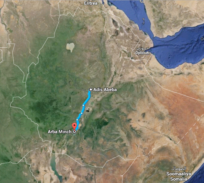 Ruta per carretera des d’Addis Abeba fins a Arba Minch – Font: Google Maps
